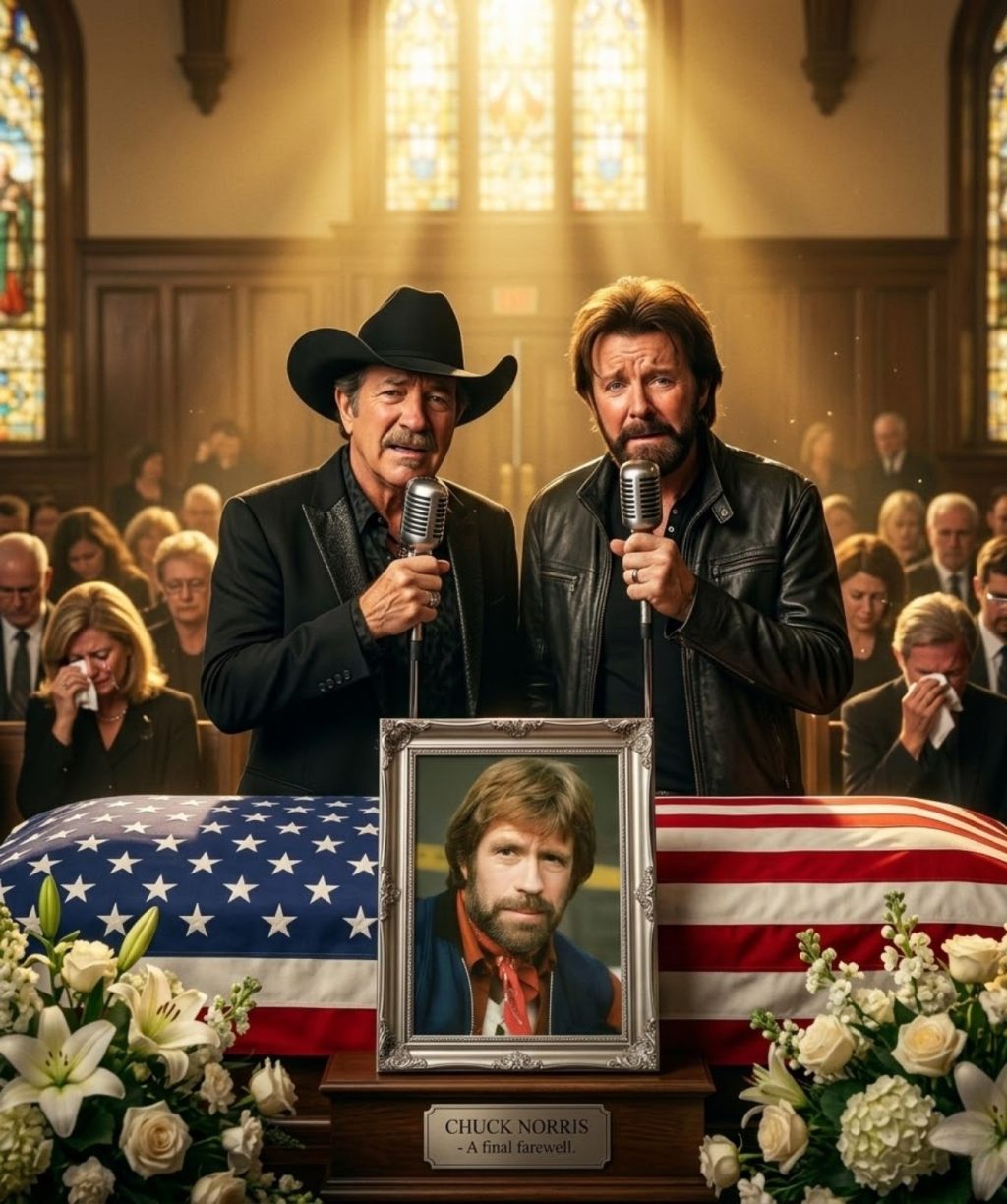 In the final, fragile moments of a memorial already heavy with grief, something unexpected unfolded—something so deeply raw, so profoundly human, that it seemed to suspend time itself. As loved ones gathered to honor Chuck Norris, the legendary figure whose strength and quiet resolve defined generations, no one could have anticipated what would come next. Yet in that sacred stillness, Brooks & Dunn stepped forward—and the world, for a moment, stood still with them.